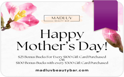 For every $100.00 you purchase in gift cards you receive a $25 Bonus card to use on skincare services only. For every $300 In Gift cards purchased you receive $100 in Bonus Bucks. Not Valid with any other promotion. Expires 12/1/25.