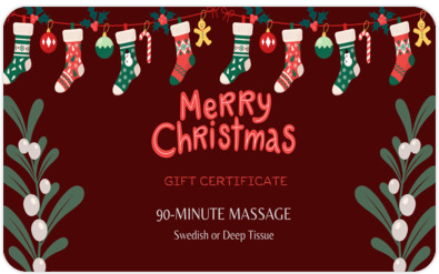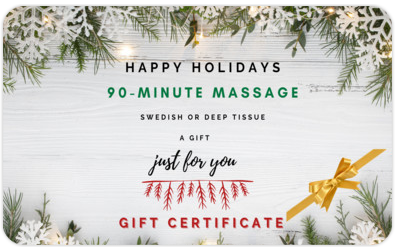 Merry Christmas! Enjoy this Wellness Gift Card for a 90-minute Massage - Swedish or Deep Tissue.