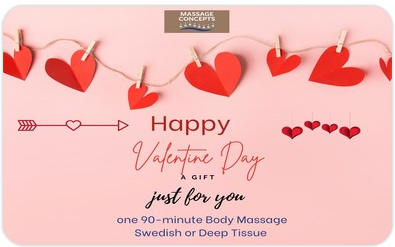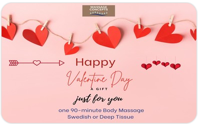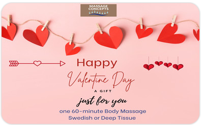 Happy Valentine's Day! Enjoy this 60-minute Full Body Massage -Swedish or Deep Tissue style.