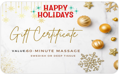 Merry Christmas! Enjoy this Wellness Gift Card for a 60-minute Massage - Swedish or Deep Tissue.