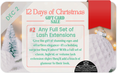 #2 Any Full Set of Lash Extensions: Give the gift of stunning eyes and effortless elegance—it’s a holiday surprise they’ll adore! With a full set of classic, hybrid, or volume lash extension styles they’ll add a touch of glamour to their look.
