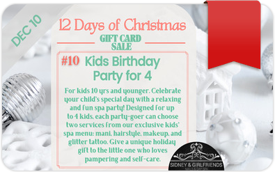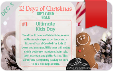 #3 Ultimate Kids Day: Treat the little ones this holiday season with a magical spa experience and a little self-care! Created for kids 10 years and younger, little ones will enjoy a kid’s pedicure, manicure, hairstyle, light makeup, and glitter ta...