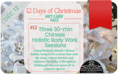 #12 Enjoy three 30-minute Chinese holistic body work sessions that calm the mind, relieve tension, and re-balance the body. A thoughtful holiday gift idea for yourself or someone special.