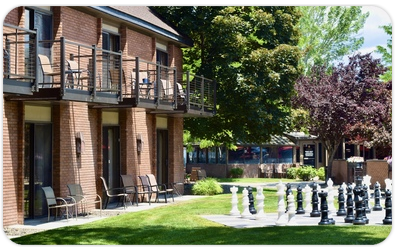 The Riverside Hotel's courtyard guest rooms offer spacious comfort, each equipped with convenient amenities like refrigerators and microwaves with a patio or balcony.