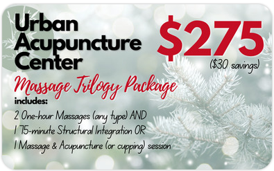 The Ultimate gift of Massage includes 2 one-hour massages (any type we offer) AND 1-75 minute Structural Integration Bodywork Session with Ros OR 1 Massage & Acupuncture (or Massage & Cupping) Session with Jeff. For more information about the type...